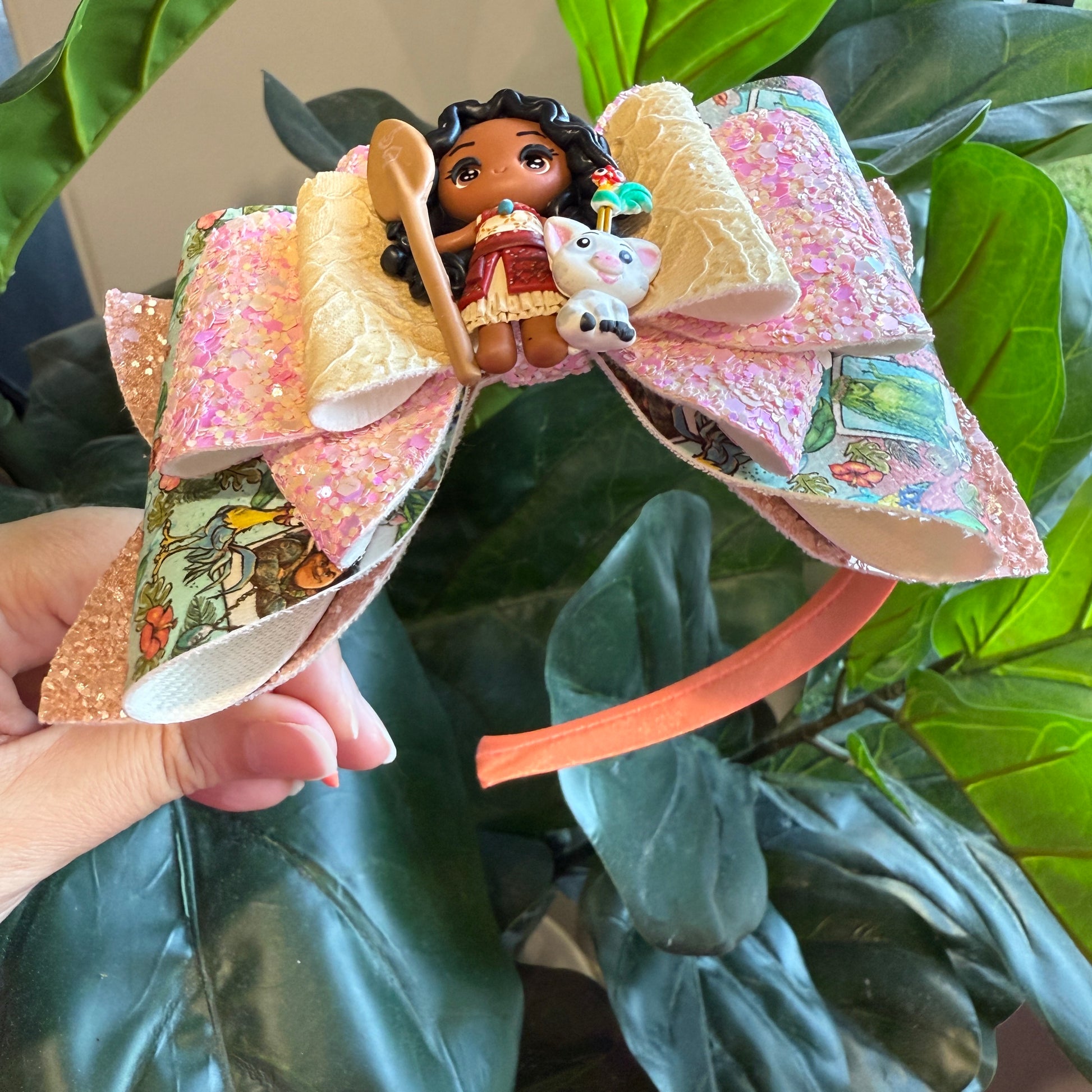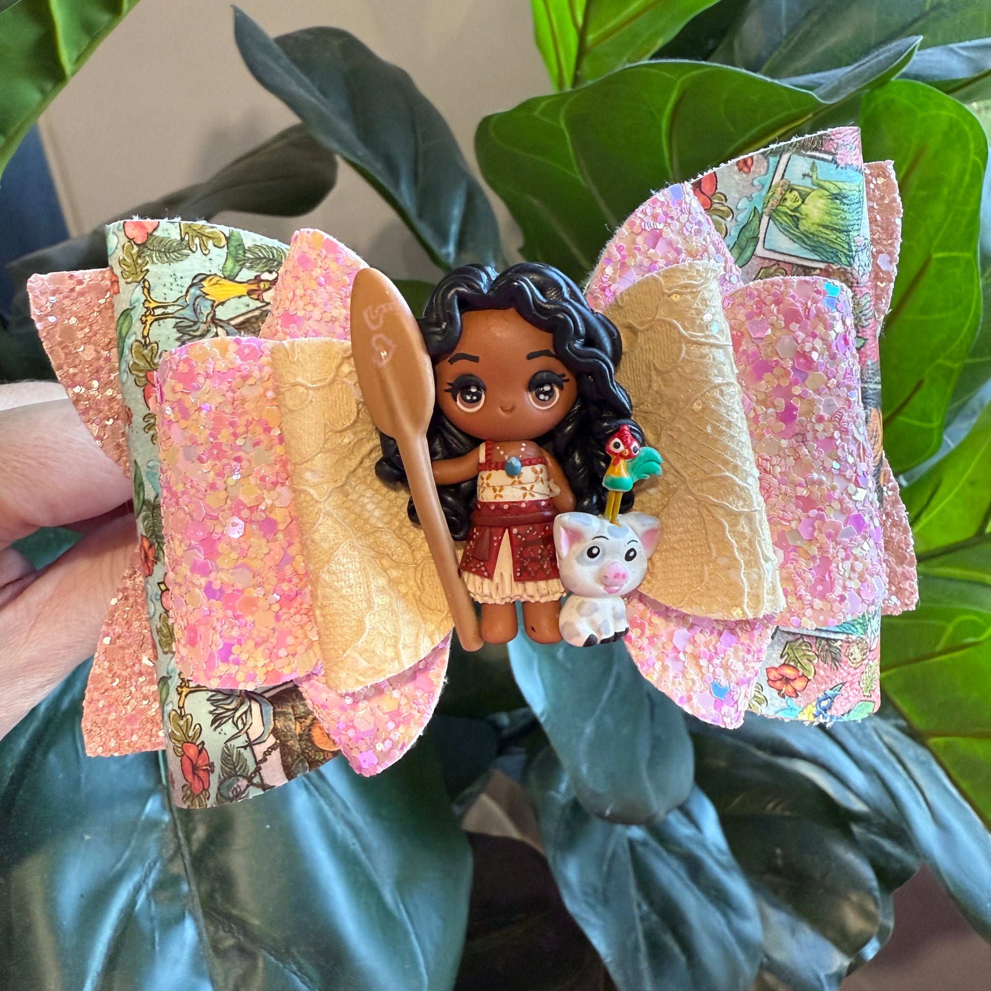 A deluxe character clay mega bow on a satin covered headband, made with high quality leather / glitter materials. This extra large layered bow is a fabulous accessory to make any princesses day.