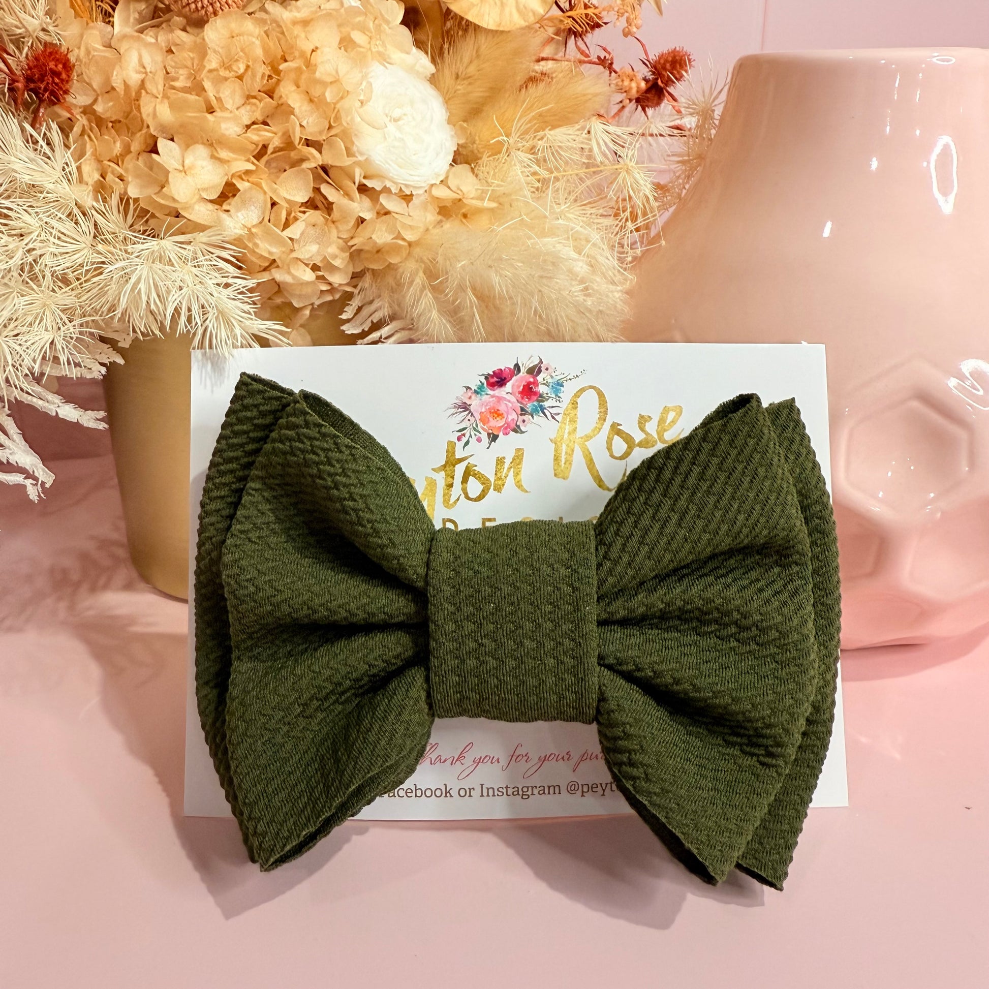 Rosie Fabric Bow - Olive Green